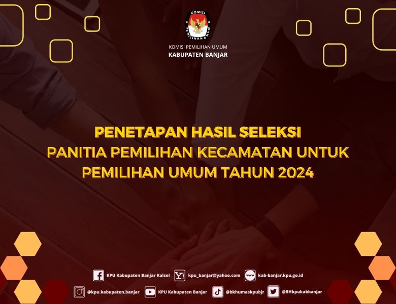 PENETAPAN HASIL SELEKSI PANITIA PEMILIHAN KECAMATAN UNTUK PEMILIHAN UMUM TAHUN 2024 Kamis, 15 Desember 2022 14:15 678 Download DISINI Bagikan: Telah dilihat 678 kali