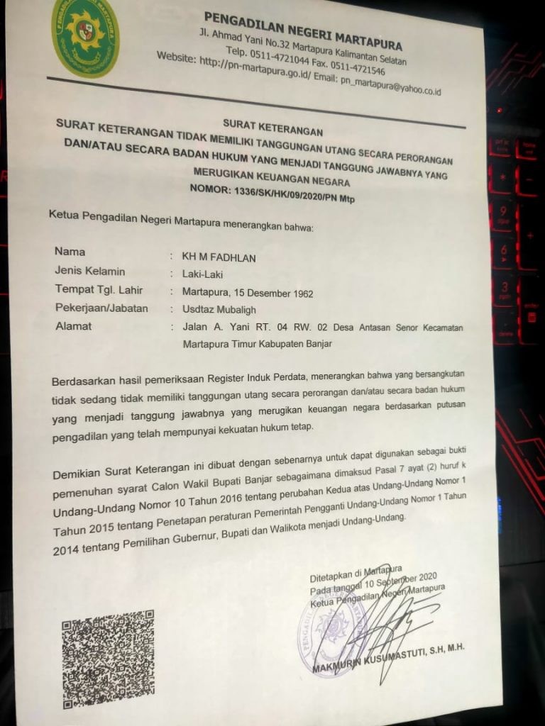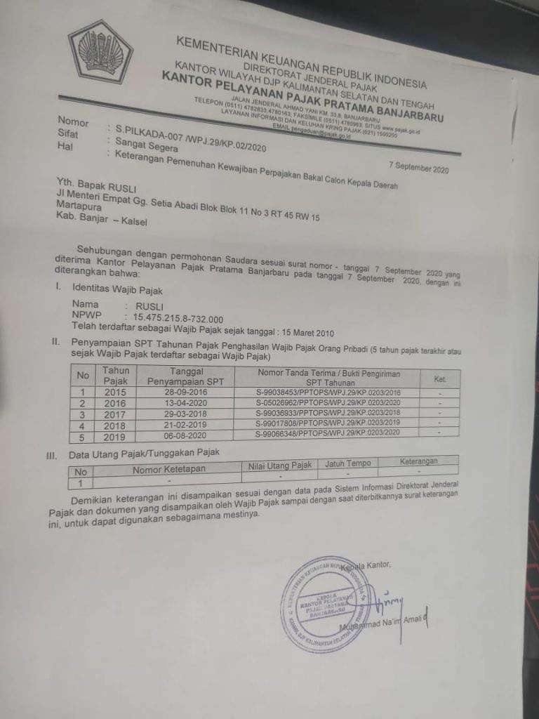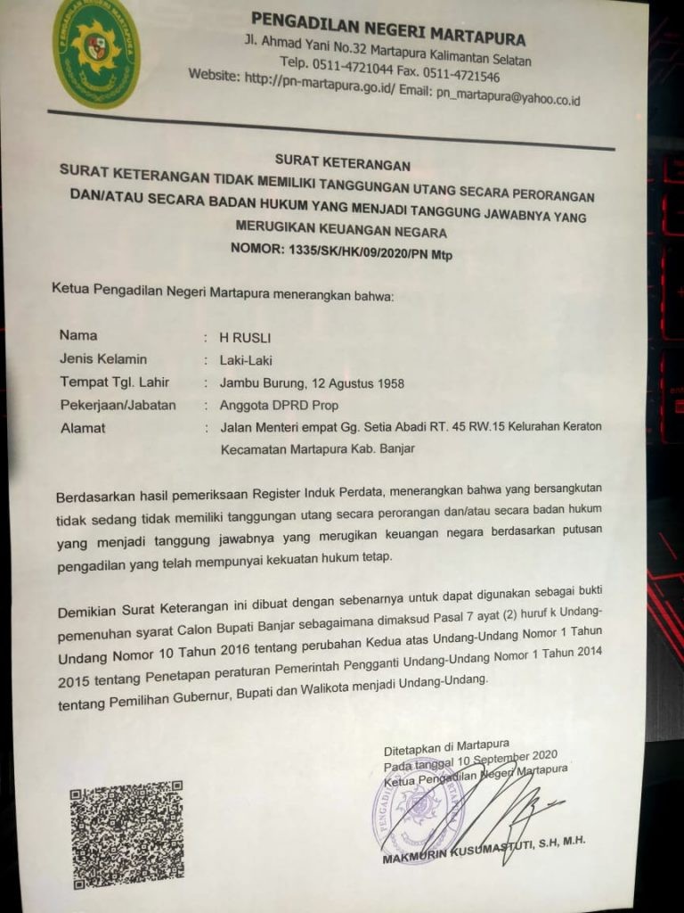 PENGUMUMAN HASIL VERIFIKASI DOKUMEN PERBAIKAN PERSYARATAN BAKAL PASANGAN CALON BUPATI DAN WAKIL BUPATI BANJAR TAHUN 2020
