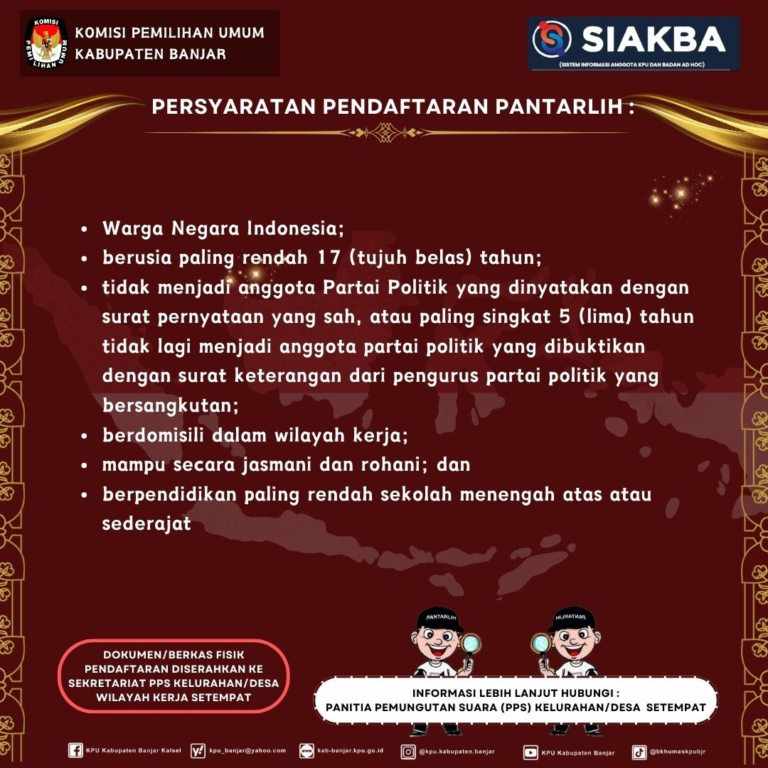 PENGUMUMAN PENDAFTARAN PANTARLIH (PETUGAS PEMUKTAHIRAN DATA PEMILIH) UNTUK PEMILIHAN GUBERNUR DAN WAKIL GUBERNUR, BUPATI DAN WAKIL BUPATI