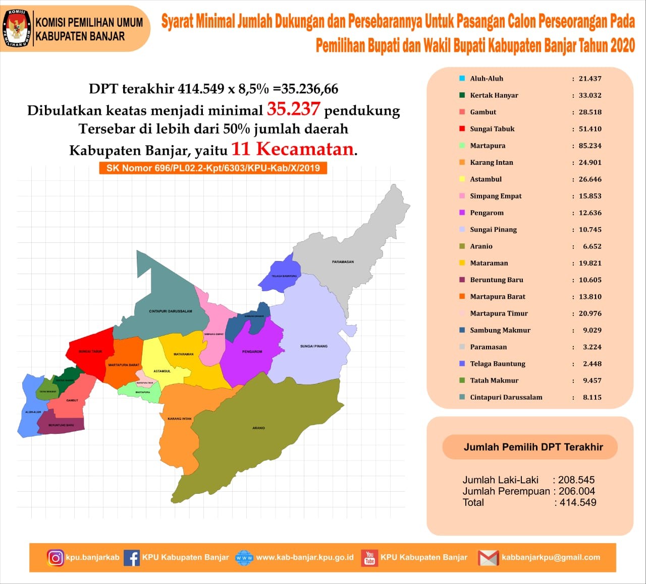 PERSYARATAN JUMLAH DUKUNGAN DAN PERSEBARAN BAGI PASANGAN CALON PERSEORANGAN PADA PEMILIHAN BUPATI DAN WAKIL BUPATI KABUPATEN BANJAR TAHUN 2019