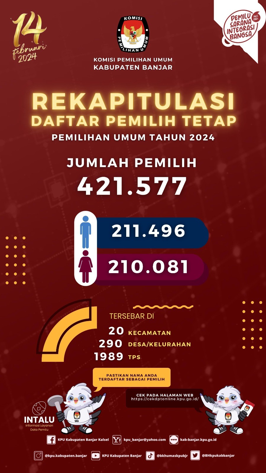 REKAPITULASI DAFTAR PEMILIH TETAP PEMILIHAN UMUM TAHUN 2024 Selasa, 20 Juni 2023 18:00 568 DOWNLOAD DISINI Bagikan: Telah dilihat 568 kali